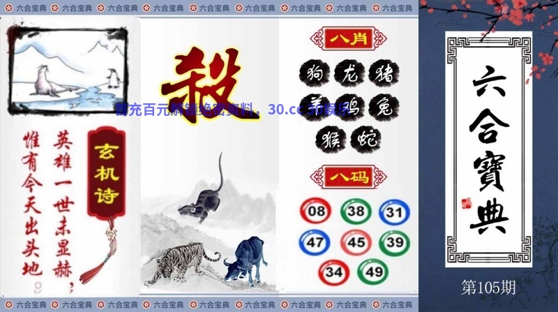 108期金牌七肖【鼠猴蛇羊牛马狗】开:猪07
